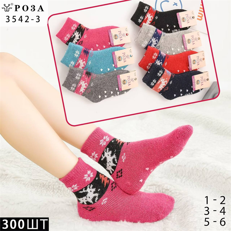Десткие носки зимние шерсть тормоза рисунок новогодний ассорти Роза мешками оптом Арт 3542-3