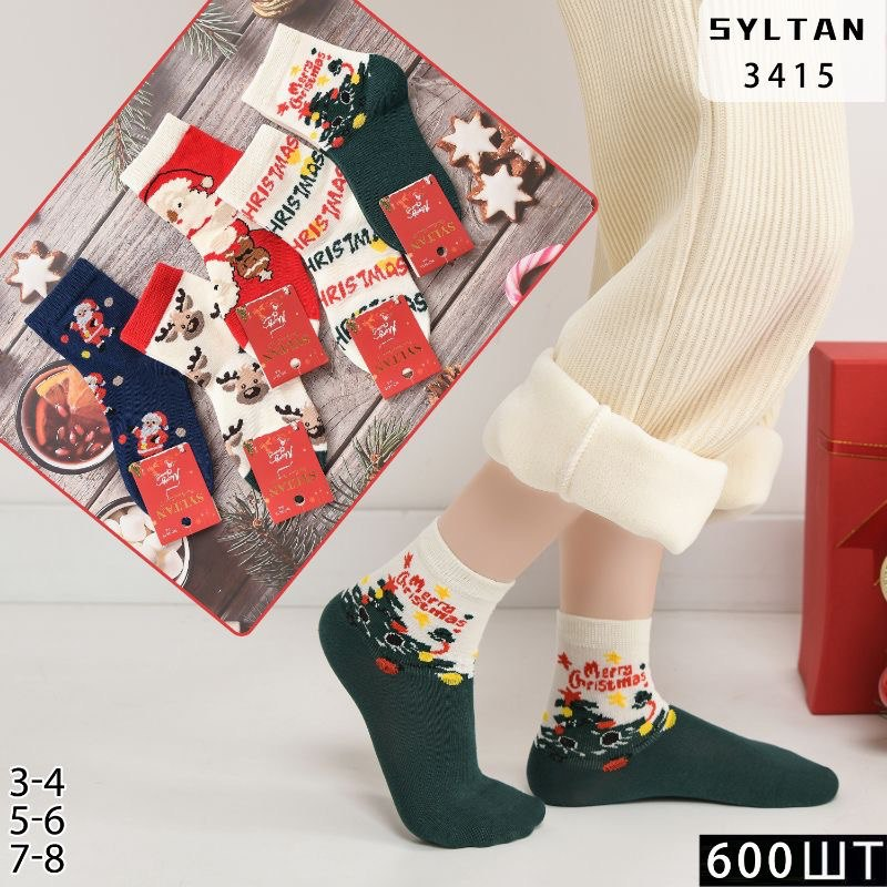 Детские носки махровые термо зимние с рисунком новогодним ассорти Syltan оптом мешками Арт 3415