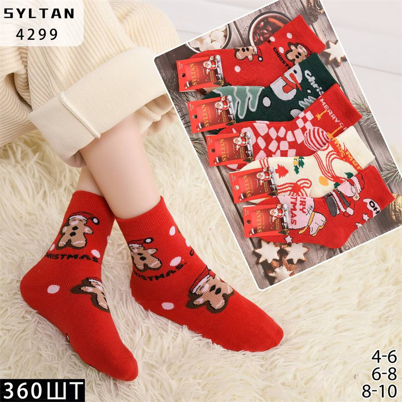 Детские носки махровые термо зимние с рисунком новогодним ассорти Syltan оптом мешками Арт 4299