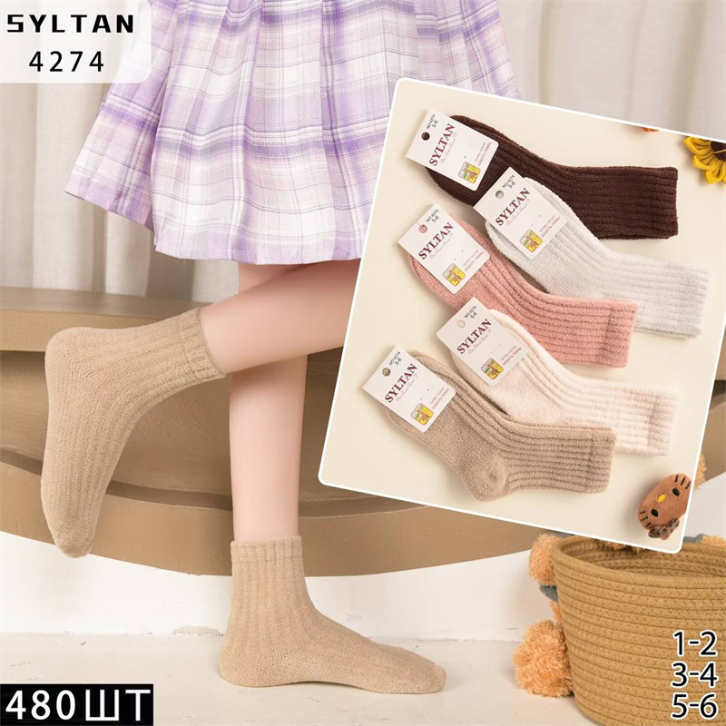 Детские носки шерсть ламы термо зимние вязка ассорти Syltan оптом мешками Арт 4274