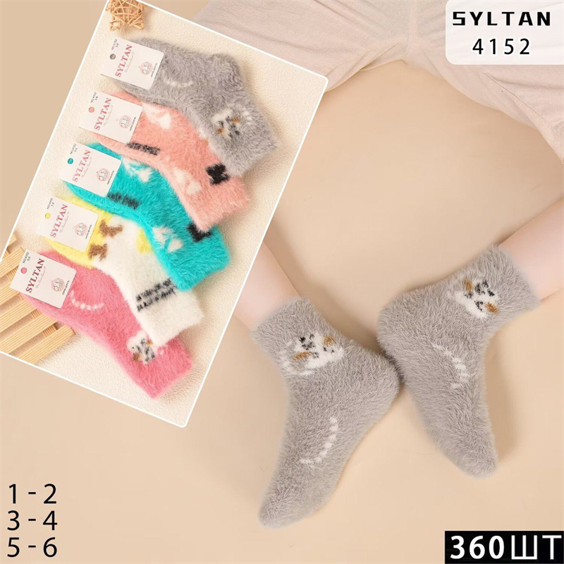 Детские носки зимние норка пушистые с рисунками ассорти Syltan оптом мешками Арт 4152