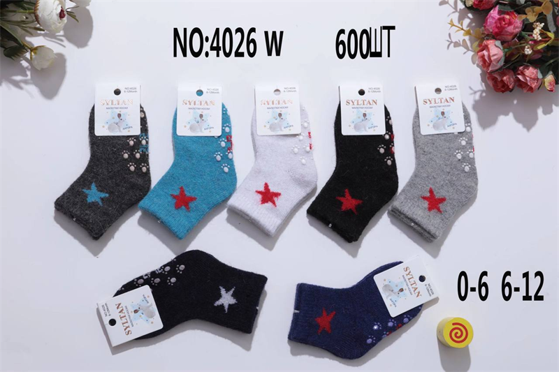 Детские носки зимние махровые гладкие с рисунком звезд ассорти SYLTAN оптом мешками Арт 4026
