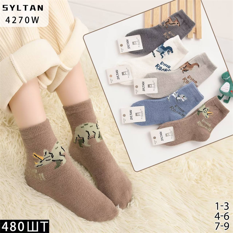 Детские носки зимние махровые с рисунком динозавров ассорти Syltan оптом мешками Арт 4270W
