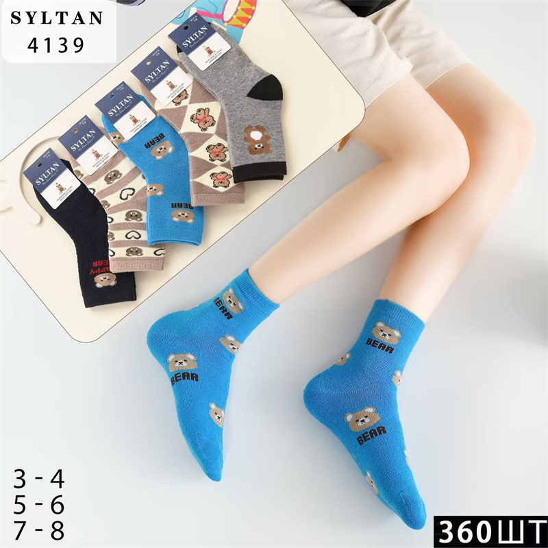 Детские носки зимние махровые с рисунком мишки ассорти SYLTAN оптом мешками Арт 4139