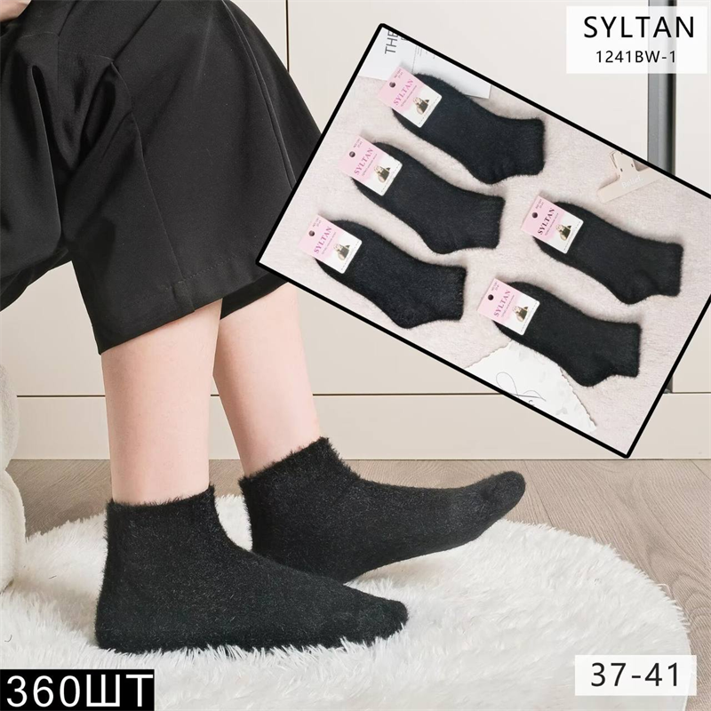 Женские носки зимние короткие шерсть соболь однотонные черные Syltan оптом мешками арт 1241BW-1