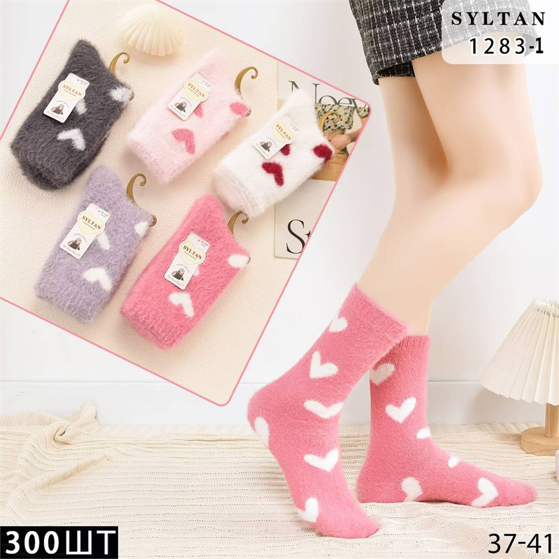 Женские носки зимние короткие шерсть соболь с сердечками ассорти Syltan оптом мешками арт 1283-1