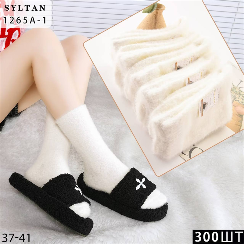 Женские носки зимние пушистые соболь однотонные белые Syltan оптом мешками арт 1265A-1