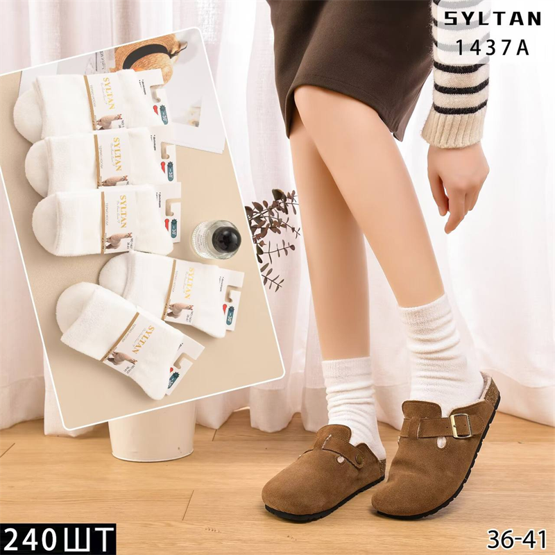 Женские носки зимние шерсть ламы термо гладкие однотонные белые Syltan оптом мешками Арт 1437A