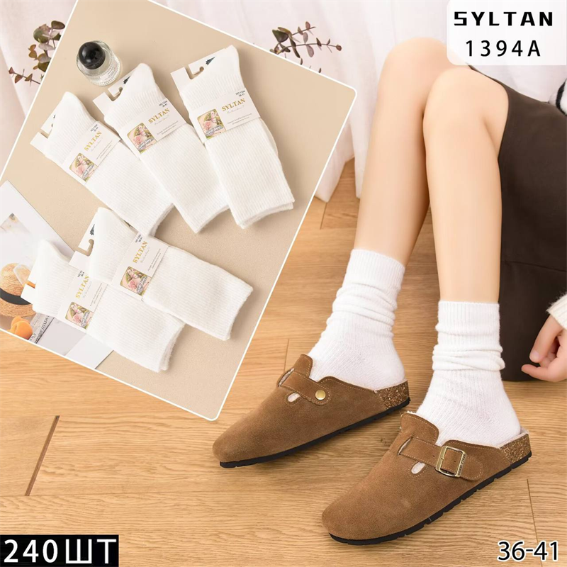Женские носки зимние шерсть ламы вязка термо однотонные белые Syltan оптом мешками Арт 1394A