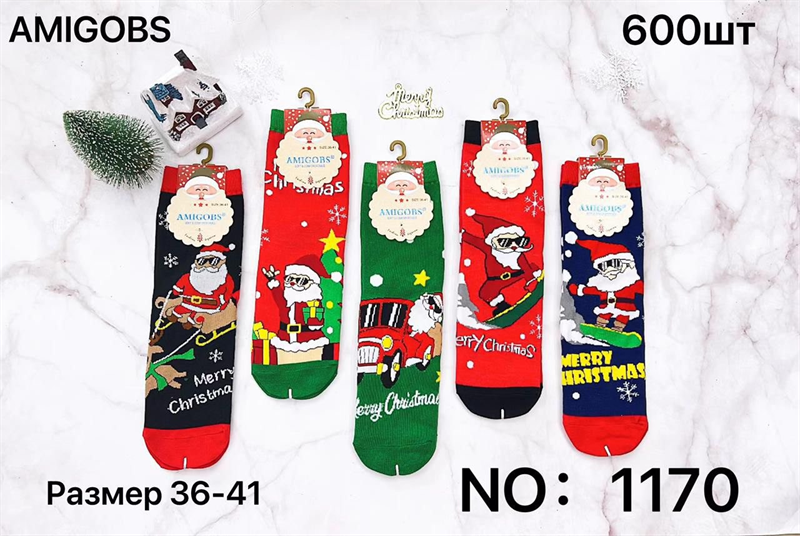 Женские носки зимние термо с рисунком новогодним ассорти Amigobs оптом мешками арт 1170