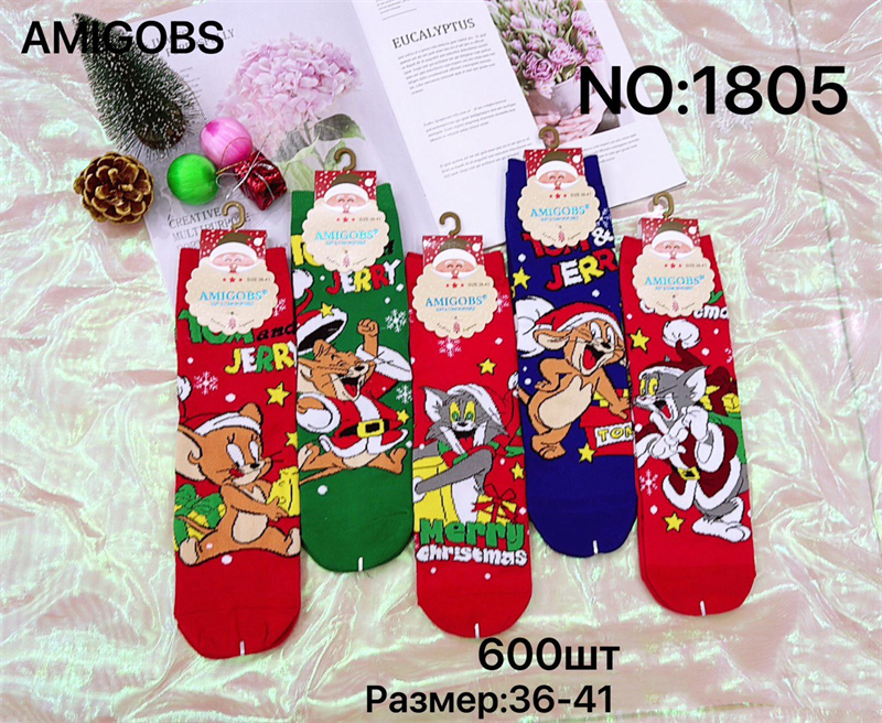 Женские носки зимние термо с рисунком новогодним ассорти Amigobs оптом мешками арт 1805