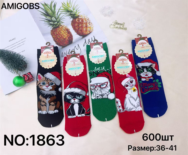 Женские носки зимние термо с рисунком новогодним ассорти Amigobs оптом мешками арт 1863