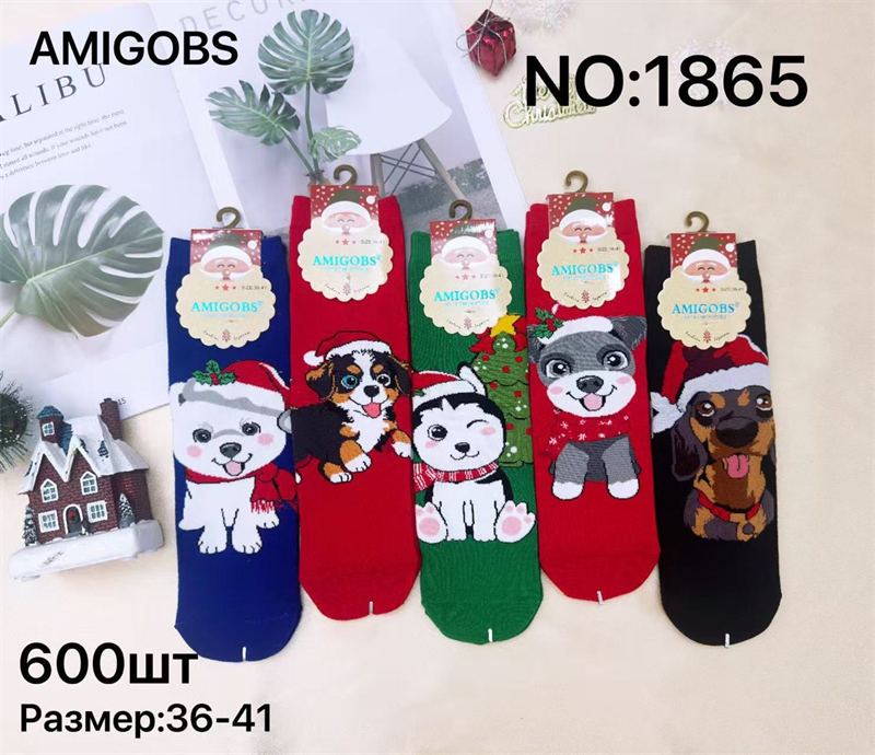Женские носки зимние термо с рисунком новогодним ассорти Amigobs оптом мешками арт 1865