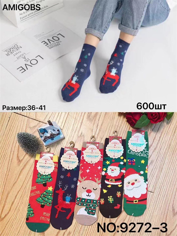 Женские носки зимние термо с рисунком новогодним ассорти Amigobs оптом мешками арт 9272-3