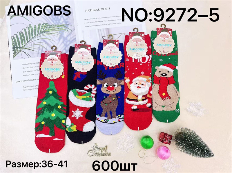 Женские носки зимние термо с рисунком новогодним ассорти Amigobs оптом мешками арт 9272-5